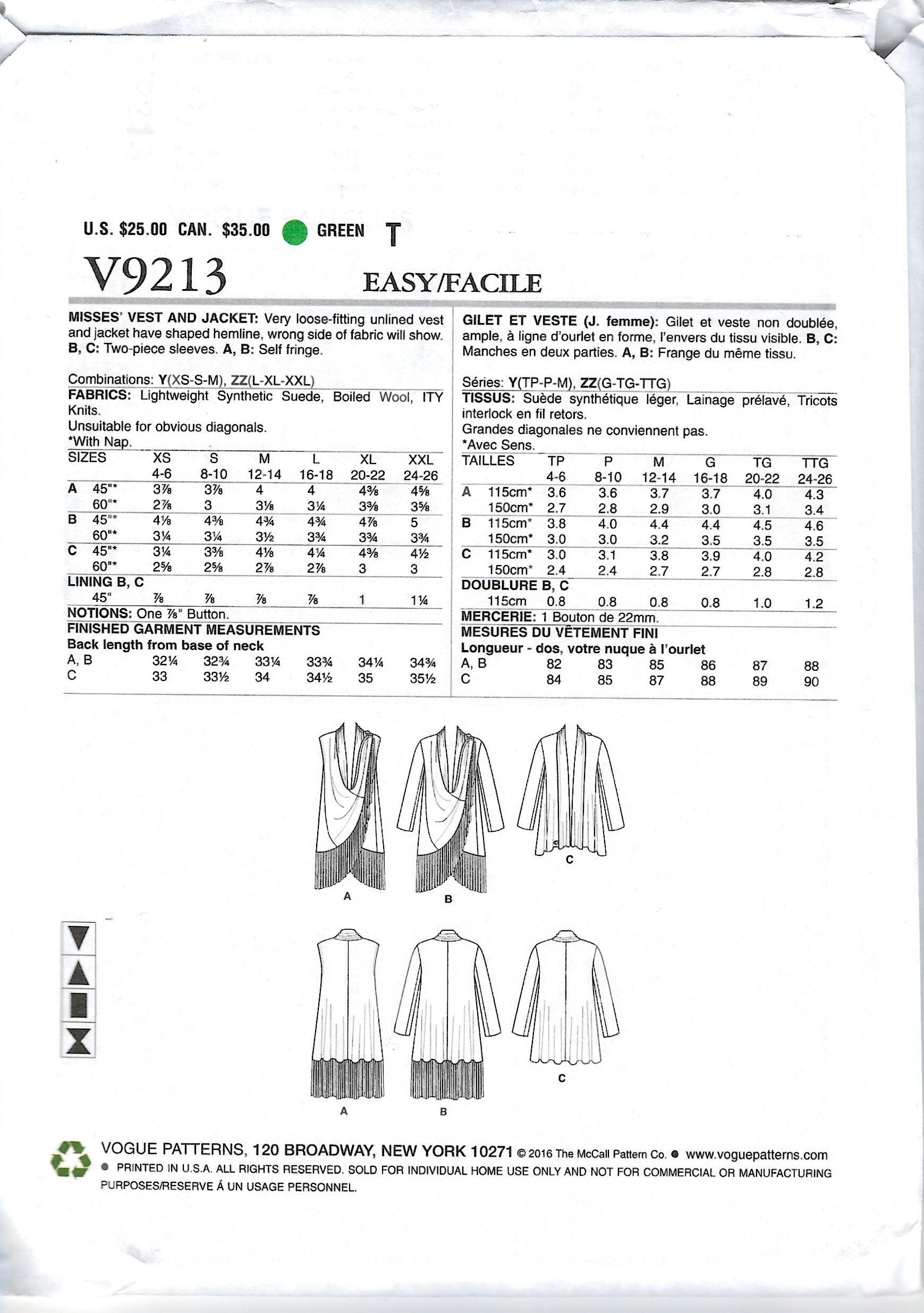 Vogue V9213 Vest And Jacket Sewing Pattern Uncut Multiple Etsy
